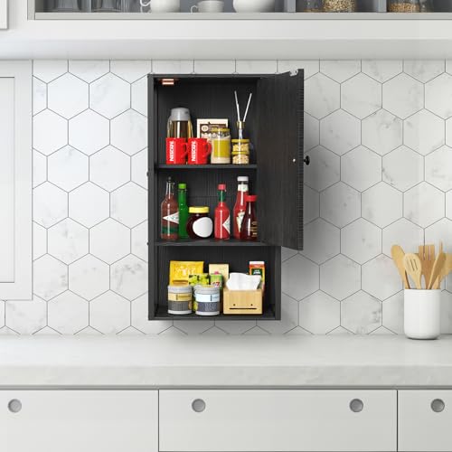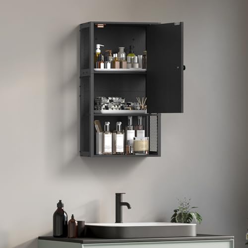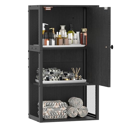 NOVIMANGO - دولاب حائط صغير للحمام من نوفي مانجو، دولاب تخزين للحمام يثبت على الحائط، دولاب أدوية عصري أسود من 3 طبقات، يثبت على الحائط فوق المرحاض للمساحات الصغيرة وغرفة المعيشة