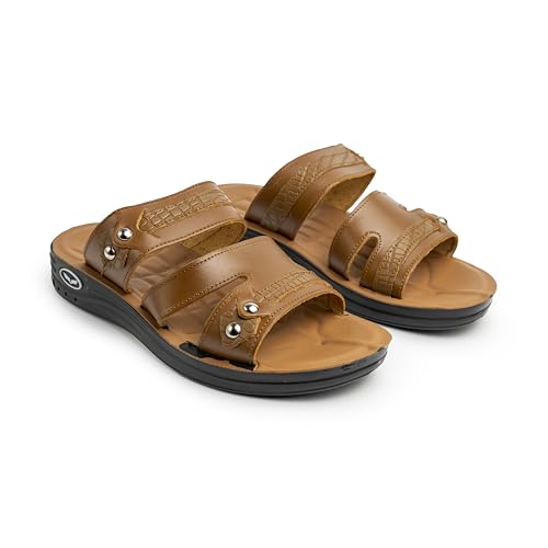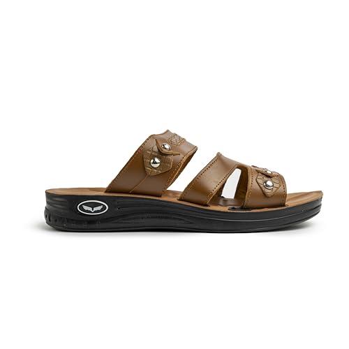 Now Shoes - صندل كاجوال للرجال طراز F2 من ناو شوز، مظهر جلدي بنمط بارز، سهل الارتداء بتفاصيل معدنية