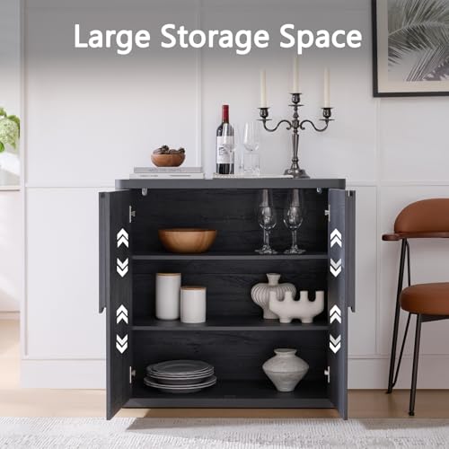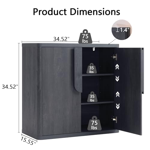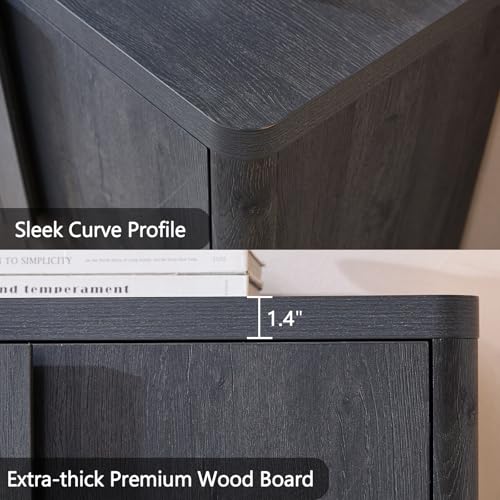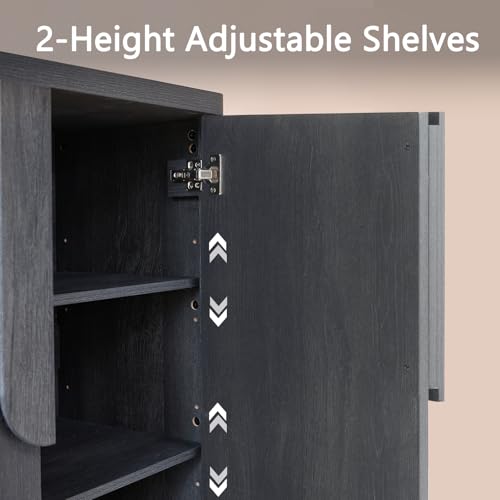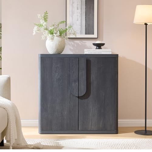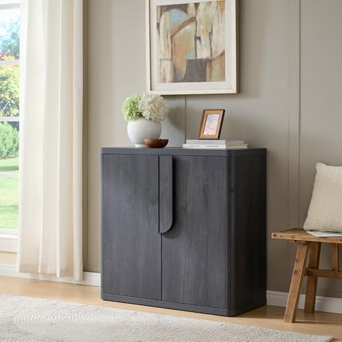 NOWABAY - خزانة بوفيه جانبية 34.5 انش مع مساحة تخزين من نواباي، خزائن عصرية بمقابض منحنية وارفف قابلة للتعديل، طاولة قهوة باربعة ابواب لغرفة المعيشة والمطبخ والرواق، رمادي داكن
