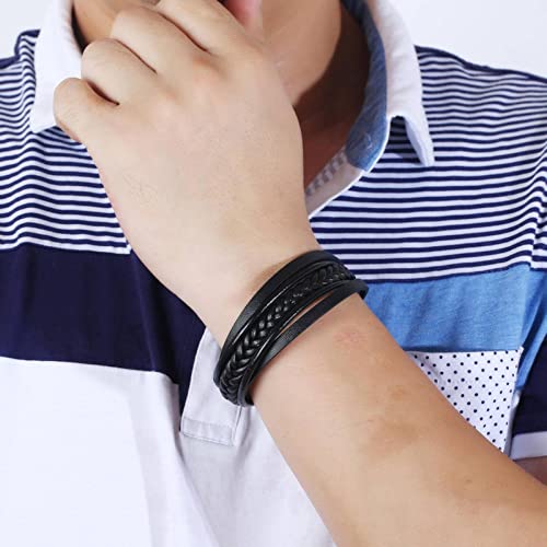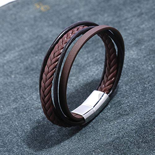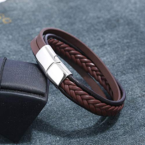 NOWLEK - سوار جلد من الستانلس ستيل والتيتانيوم بتصميم بسيط منسوج متعدد الطبقات للرجال من نوليك، سوار كلاسيكي للصديق وهدية عيد الاب، 20.5 سم