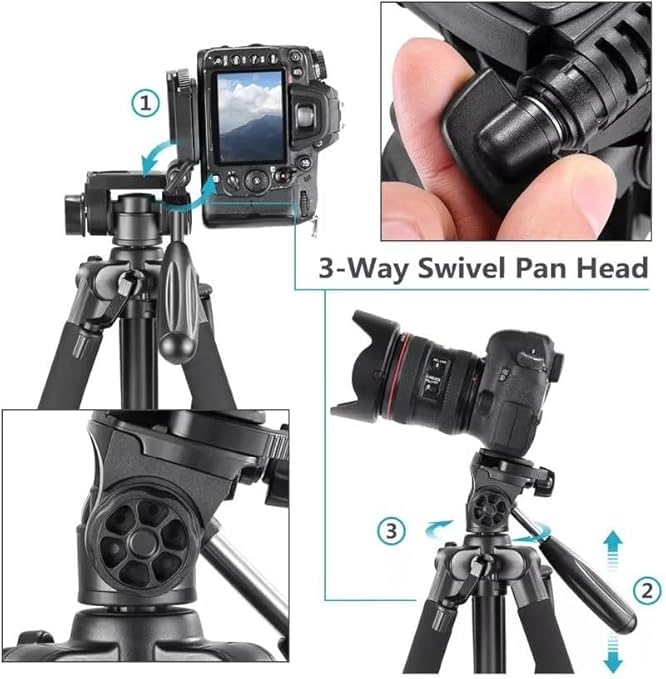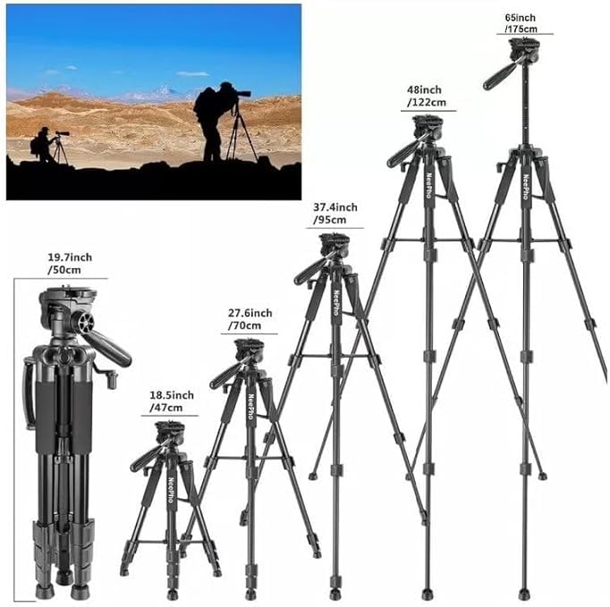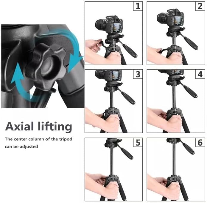 - مجموعة كاملة: تتضمن مجموعة الحامل ثلاثي القوائم الاحترافية حامل كاميرا ومحول تثبيت للموبايل وشنطة حمل ودليل تعليمات، (استخدام اللغة العربية غير مؤكد) لتجربة تصوير متعددة الاستخدامات بكل دقة.