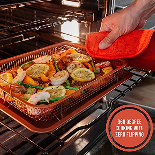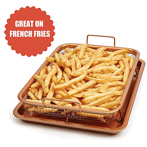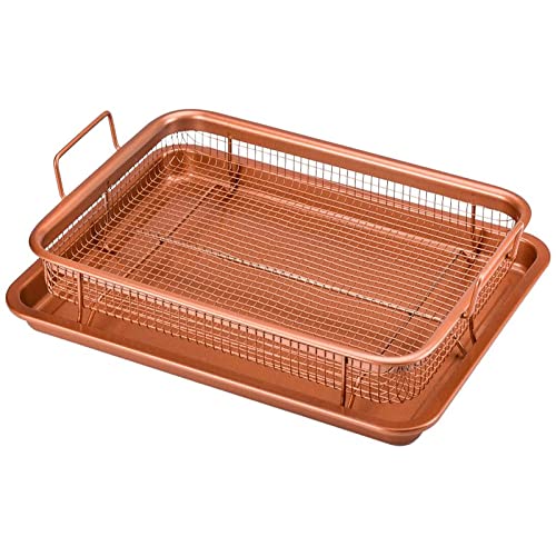 NSFRCLHO - سلة طاسة قلي هوائية مع صينية نحاسية فاخرة للمخبوزات في الفرن، بقطعتين
