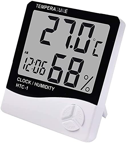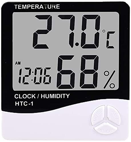 Happy Square - جهاز مراقبة درجة الحرارة الرقمي للاماكن الداخلية والخارجية مع منبه LCD للمنزل والمكتب والسيارة وغرفة الاطفال وغرفة النوم والصوبة الزراعية والجراج والمستودع من ان تيك