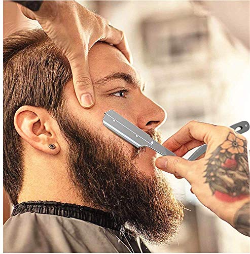 NTRENCY - ماكينة حلاقة احترافية بحافة مستقيمة من الفولاذ المقاوم للصدأ بشفرة مستقيمة للحلاقة اليدوية للرجال بدون شفرة من ان ترينسي