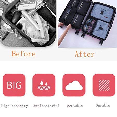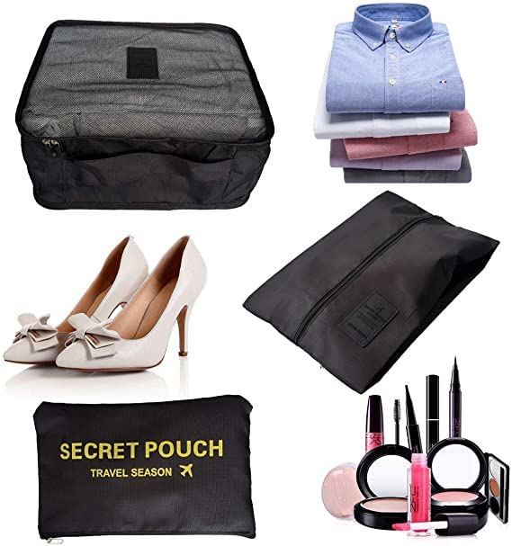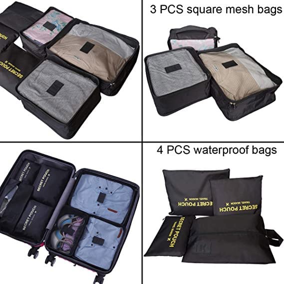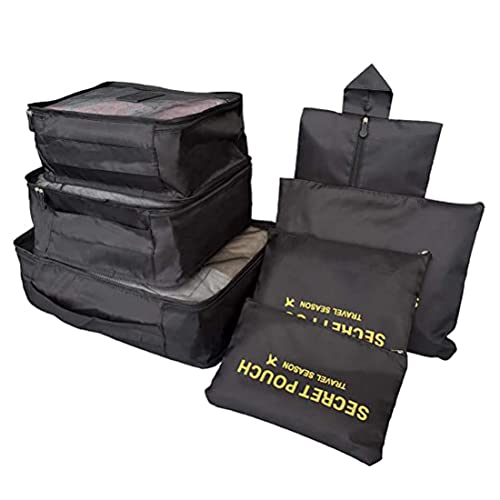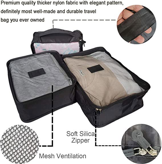 NUANHOM - 7 قطع مكعبات التعبئة، منظمات تعبئة امتعة السفر مع شنطة احذية، شنطة ضغط للسفر لتنظيم الامتعة، من نوانهوم، نايلون، أسود
