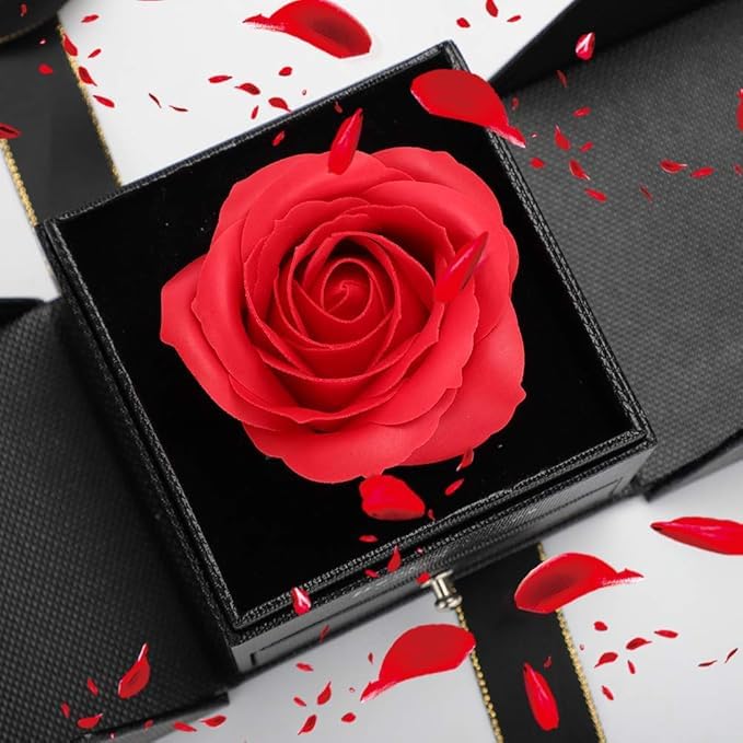 - ღ أفكار هدايا فريدة: يوجد داخل الصندوق درج حيث يمكنك وضع بعض المجوهرات كهدية في يوم خاص. يمكنك أيضًا وضع هديتك، تمامًا مثل الخاتم أو القلادة أو البروش أو الأقراط أو المجوهرات الأخرى في الدرج أو في منتصف الوردة لتقديم مفاجأة كبيرة لمتلقي الهدية. صندوق مجوهرات روز يمثل حبك الأبدي.