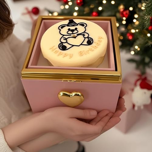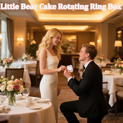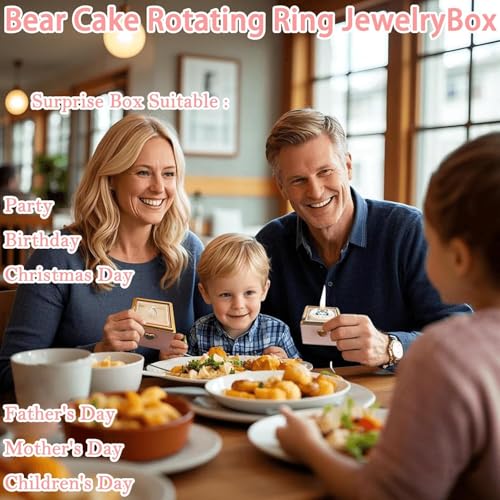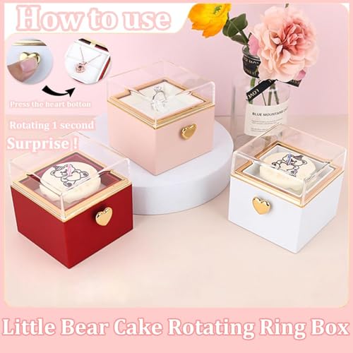 Generic - صندوق خاتم دوار للخطوبة من نوبيا، كعكة الدب الصغير قلاب، عيد الزفاف، عيد الميلاد، حامل خاتم مفاجأة، صندوق اقتراح وقلادة واساور، صندوق مجوهرات هدية للنساء والرجال (بينك)
