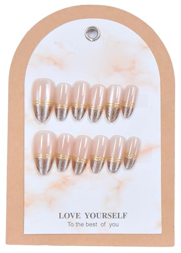 Generic - أظافر صناعية بتصميم نيود مع ذهبي، 12 قطعة، أظافر قابلة للإزالة بنمط عصري