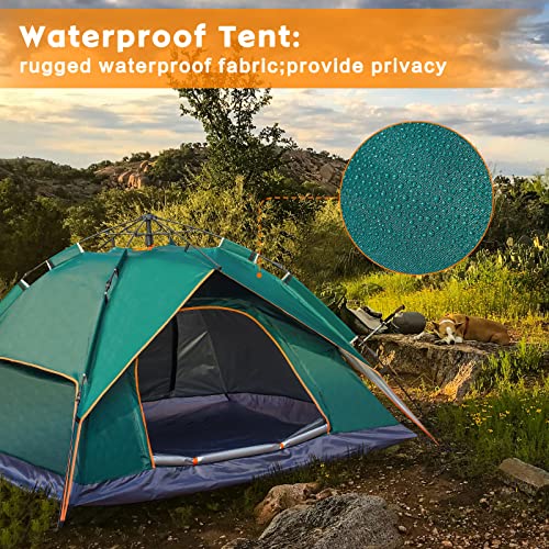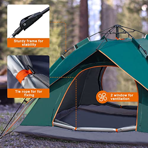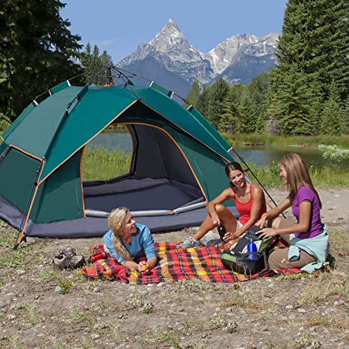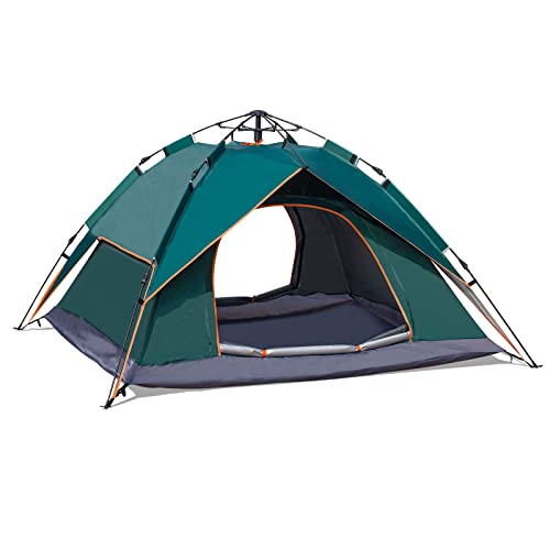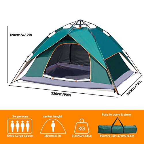 NUKied - خيمة منبثقة للتخييم في الهواء الطلق من نوكيد عائلية تتسع لـ 3-4 أشخاص محمولة أوتوماتيكية سهلة التركيب مقاومة للمطر والرياح والشمس بوليستر أخضر