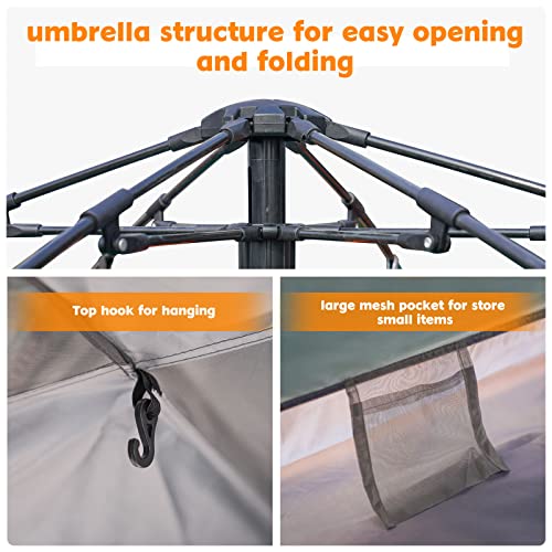 - 【خيمة أوتوماتيكية】سهلة التجميع بدون أي أدوات. اضغط بلطف على دعامة التوازن أسفل الإطار العلوي للخيمة لفتحها. لطي الخيمة، قم بطي مفاصل الدعامات الداخلية بلطف، ثم ارفع الأعمدة الستة تدريجيًا لتندمج مع هيكل الخيمة الرئيسي. تأتي مع شنطة محمولة، لذلك يمكنك طيها بسهولة وأخذها معك!