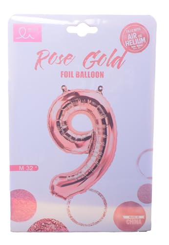 Generic - بالون فويل يملأ بالهواء أو الهيليوم بتصميم رقم 9، وردي، مقاس 90 سم