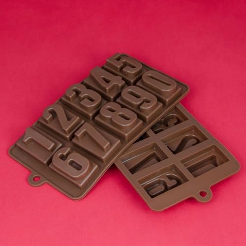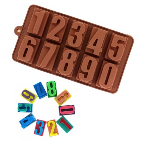 Generic - قالب سيليكون بتصميم أرقام لصنع الشوكولاتة والثلج والفوندان، بني، 20.5 × 11 × 2 سم، لتزيين الكيك والخبز