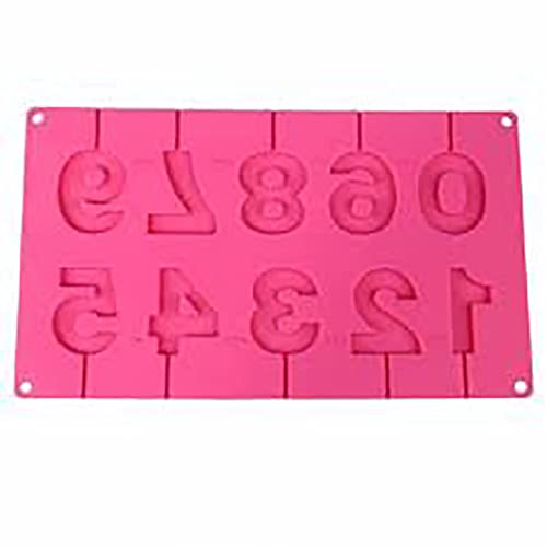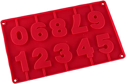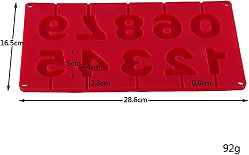 - قوالب سيليكون ثلاثية الأبعاد على شكل أرقام 0-9 للمصاصة وعصي الشوكولاتة، قالب كاندي مع العصي لزينة الحفلات (احمر)