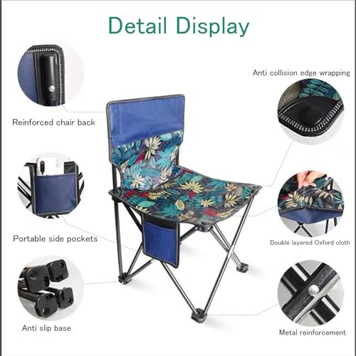 Numjeg - كرسي تخييم محمول قابل للطي مع دعامة خلفية مريحة للسفر والصيد والمشي لمسافات طويلة والبستنة والشاطئ والشواء مع شنطة حمل من نومجيج، مقاس صغير