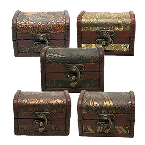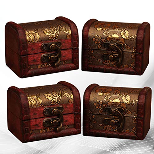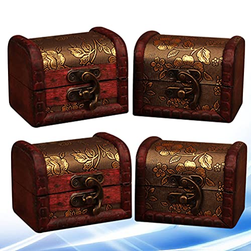 NUOBESTY - مجموعة صناديق خشبية من 4 قطع من نوبيستي للاحتفاظ بالحلق والخاتم والدلاية، صندوق هدايا فينتاج للزينة لحفلات الزفاف والخطوبة واعياد الميلاد (تصميم عشوائي)، بني فاتح، الخشب