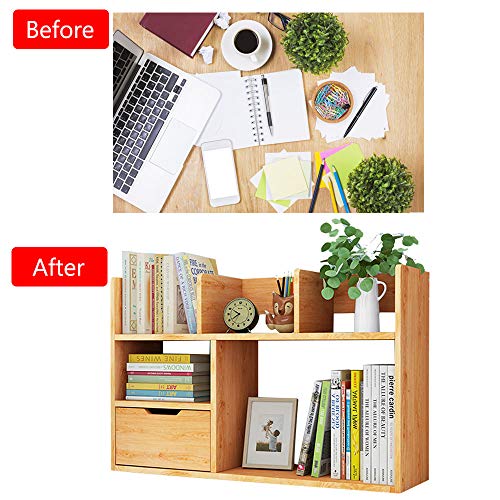 NUODWELL - رف كتب مكتبي مع درج، منظم رف تخزين يمكنك تركيبه بنفسك، رف عرض مكتبي متعدد الوظائف لتخزين لوازم المكتب من كتب ومستحضرات تجميل ومكياج، للمكتب والمنزل من نيود ويل (أبيض)، خشب، مات