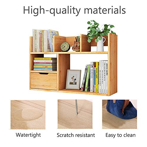- 【حجم مثالي】: يبلغ حجم رف منظم الكتب المكتبي هذا حوالي 80 سم × 17 سم × 46 سم، حجم ملائم لوضعه على المكتب والمساعدة في تخزين كتبك أو حامل الأقلام أو لبعض قطع الزينة أو غيرها من الأشياء الدراسية، مع درج تخزين.
