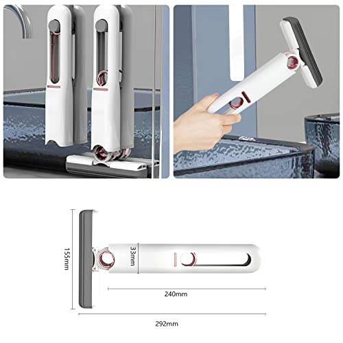 NUOKOU - ممسحة صغيرة محمولة ذاتية الضغط من نوكو، ممسحة قصيرة قوية الامتصاص لا تغسل باليد، للحمام والمطابخ وادوات المائدة وسطح المكتب (2 راس قطن + 1 مقبض ضغط)