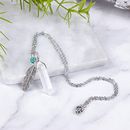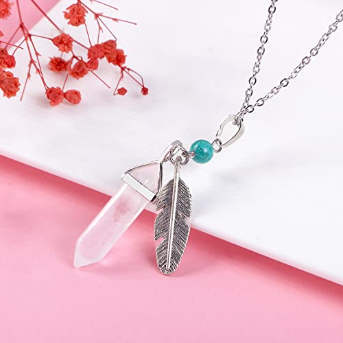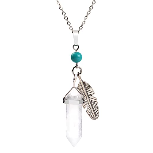 NUOTE - عقد بقلادة سداسية من حجر الكوارتز الشفاف الابيض مع زينة اوراق شجر وسلسلة قابلة للتعديل وكريستالات ريكي للعلاج بالطاقة والشفاء مجوهرات كوارتز روحية طبيعية للنساء والرجال