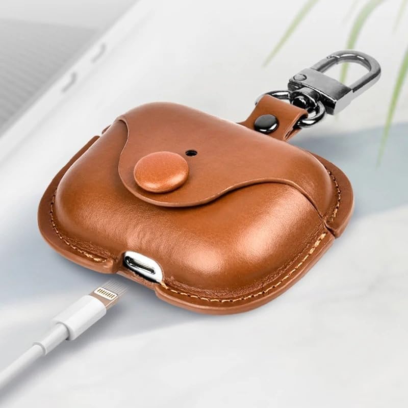 Nopatia - نوباتيا جراب حماية متوافق مع سماعات ايربودز 4 الجيل الرابع مصنوع من الجلد الصناعي الفاخر مقاوم للصدمات والخدش مع ميدالية تعليق معدنية ويدعم الشحن اللاسلكي (بني)