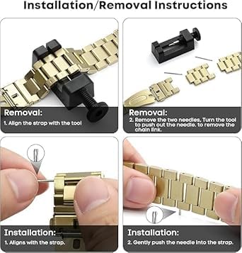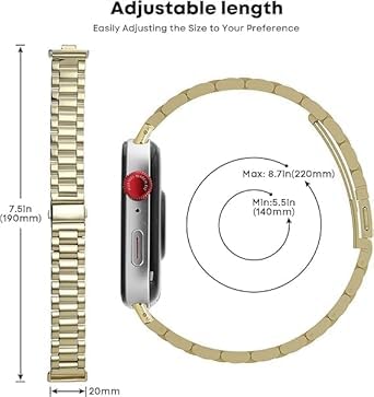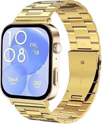 Nopatia - نوباتيا لـ ساعة هواوي فيت 4 مقاس 1.82 بوصة سوار بديل ممتاز من الفولاذ المقاوم للصدأ قابل للتعديل حلقات معدنية مع مشبك مزدوج قابل للطي اكسسوار رسمي متين (دهبي)