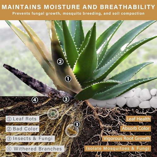 - اجعل النباتات تزدهر: مثالية للاستخدام أعلى أو أسفل النباتات. يمنع الوضع العلوي الآفات ويحافظ على الرطوبة وينظم رطوبة التربة. يساعد الوضع السفلي على التصريف ويمنع الإفراط في الري ويعزز التهوية ويعزز امتصاص العناصر الغذائية. يعزز صحة النباتات ذات الجذور القوية والألوان النابضة بالحياة.
