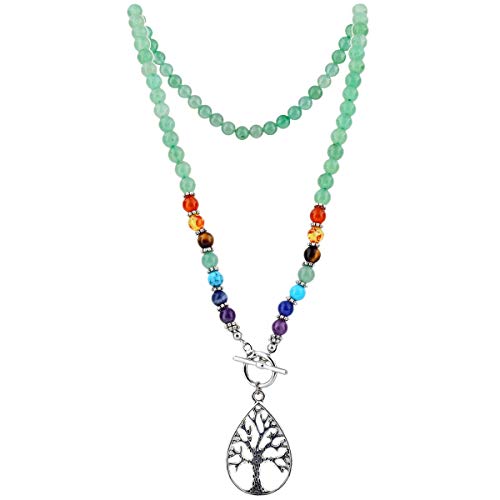 Nupuyai - سوار بدلاية شجرة الحياة للجنسين من نابوياي، سلسلة تتضمن 7 احجار شفاء شاكرا مالا، سوار لليوجا والتامل والصلاة, حجر, حجر