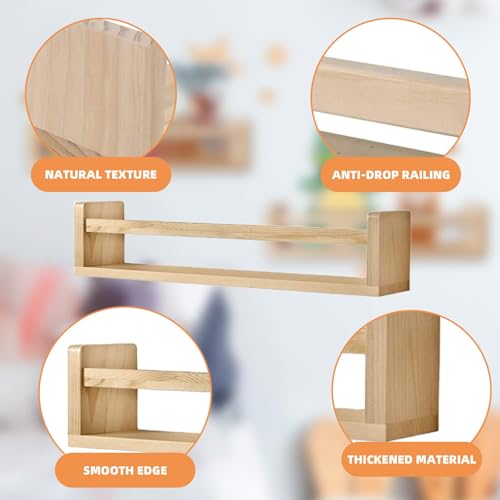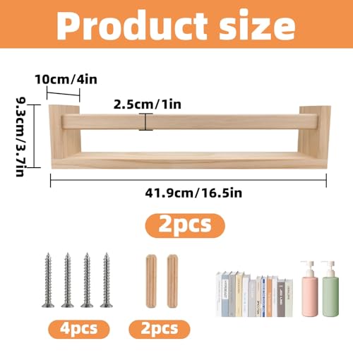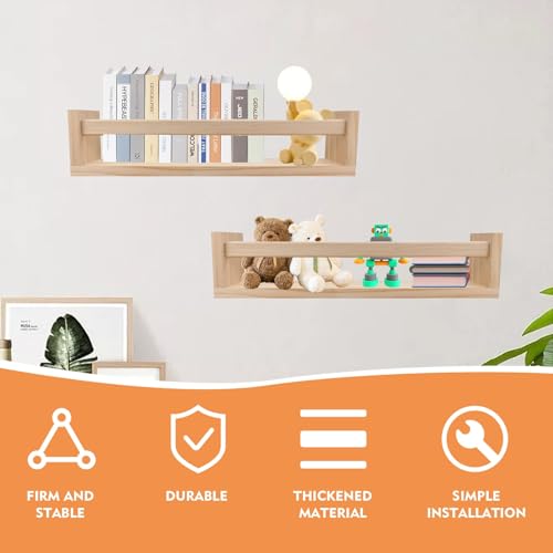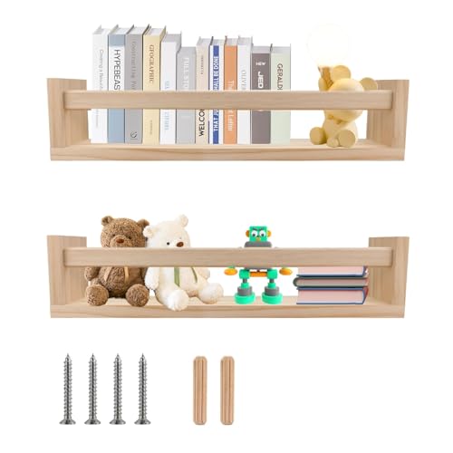 WEELOO - ارفف كتب لغرفة الاطفال من قطعتين، رف خشبي عائم يثبت على الحائط للحضانة، رف تخزين ديكوري لتزيين الحمام، رف توابل المطبخ، تخزين الالعاب لغرف النوم والحمامات والمطبخ