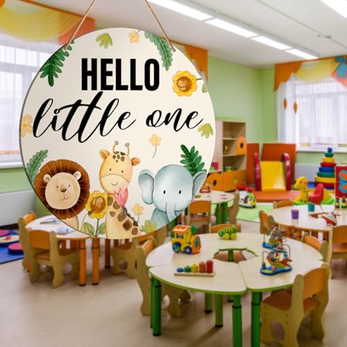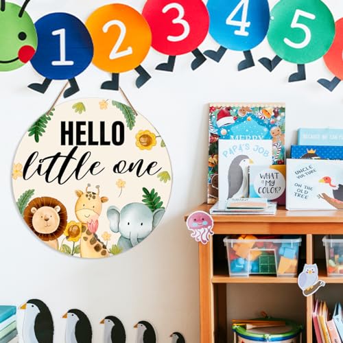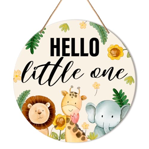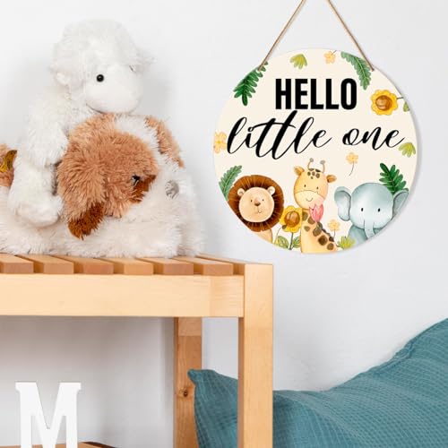 Muktoujaumai - ديكور حائط لغرفة الاطفال، لافتة معلقة لغرفة الاطفال، لافتة خشبية بتصميم غابة لديكور غرفة نوم الاطفال وغرفة اللعب وغرفة الاطفال وغرفة الالعاب بتصميم عبارة Hello Little One
