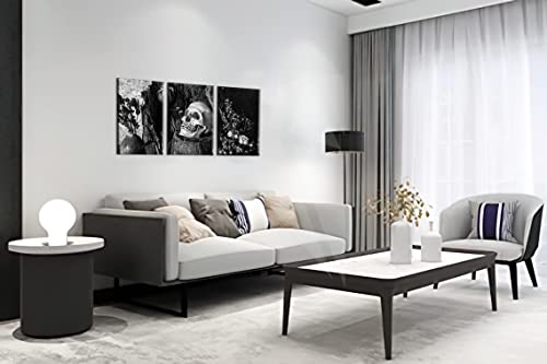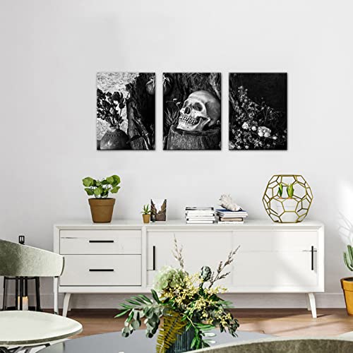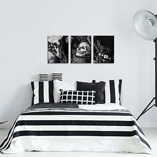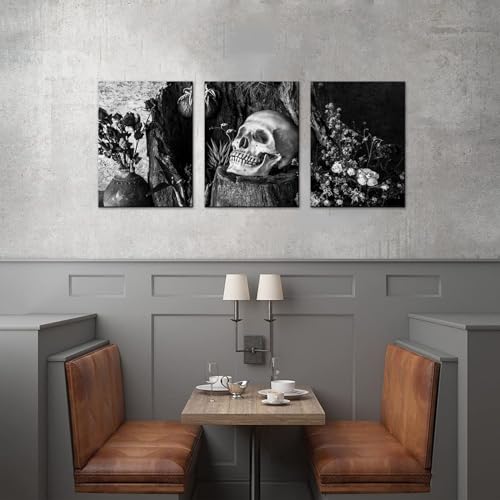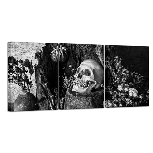 NutArtPic - لوحة فنية جدارية بتصميم جمجمة يوم الموتى باللونين الاسود والابيض وزهرة وهيكل عظمي قوطي من القماش ملفوفة اسود وابيض مقاس S نوت ارت بيك