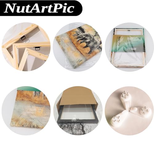 - جاهزة للتعليق: قماش عالي الدقة ممتد على إطار خشبي حقيقي. خطاف تعليق معدني مثبت بالفعل على الجزء الخلفي من الإطار، ويأتي مع مسامير ومستوى صغير.