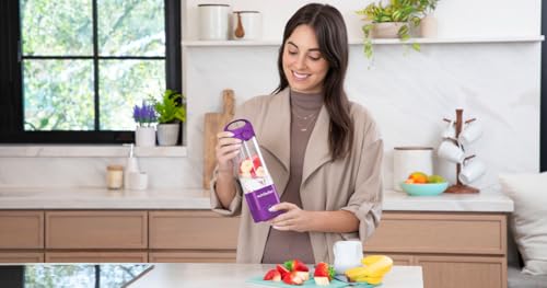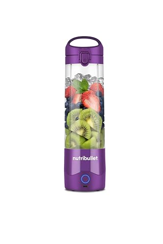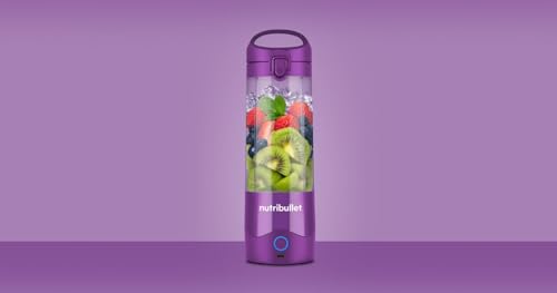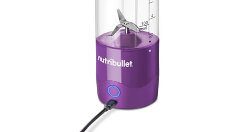 NutriBullet - خلاط محمول خفيف الوزن من تريتان خالي من مادة بيسفينول أ من نوتري بوليت، شفرة من الفولاذ المقاوم للصدأ بـ 4 رؤوس، متعدد الوظائف، شاحن USB-C، أكثر من 15 دورة خلط لكل شحنة، 475 مل، بنفسجي فاتح، NBP003PU