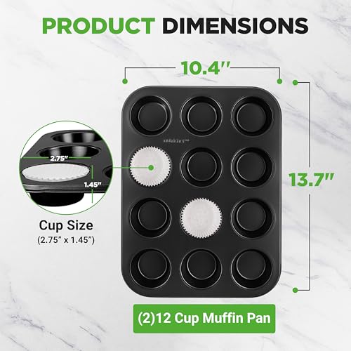 - مثالية لعشاق الخبز – سواء كنت تصنع الكاب كيك أو تحضر المافن، تجعل هذه الصواني المكونة من 12 كوب عملية الخبز سهلة وممتعة. ما عليك سوى صب الخليط في الأكواب غير اللاصقة، واستمتع بالخبز. ودّع التصاق الورق والفوضى عند التنظيف.