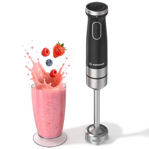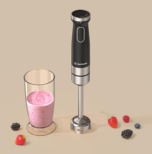 Nutricook - نيوتري كوك خلاط يدوي | محرك تيار مستمر قوي 1200 واط، تحكم متغير السرعة، عمود من الستانلس ستيل ودورق 600 مل، NC-HB150K (اسود)