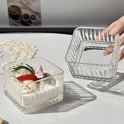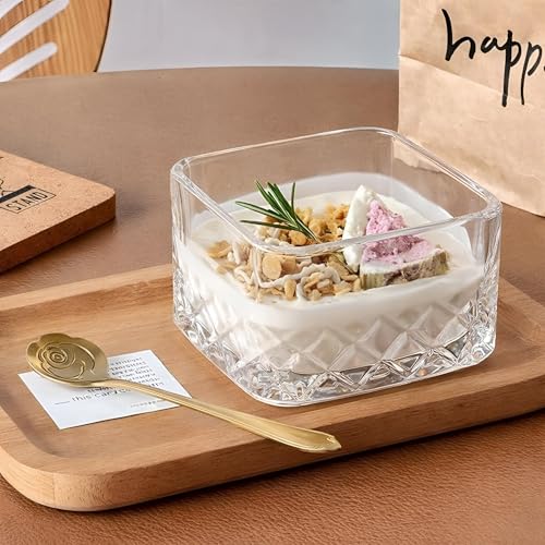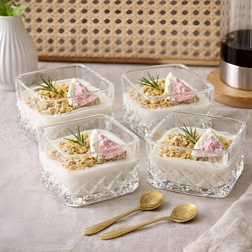 Generic - بولات تقديم المكسرات، بولات زجاج مربعة بنقش طوب أنيق مصممة لتقديم المكسرات والزبادي والكاسترد والبارفيه في المنزل أو في المناسبات الخاصة، طقم من 4 قطع