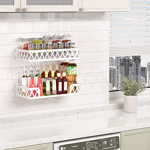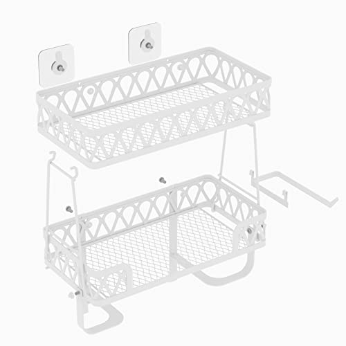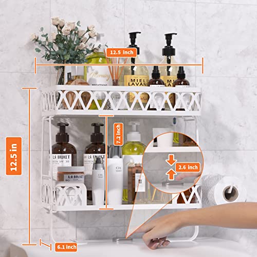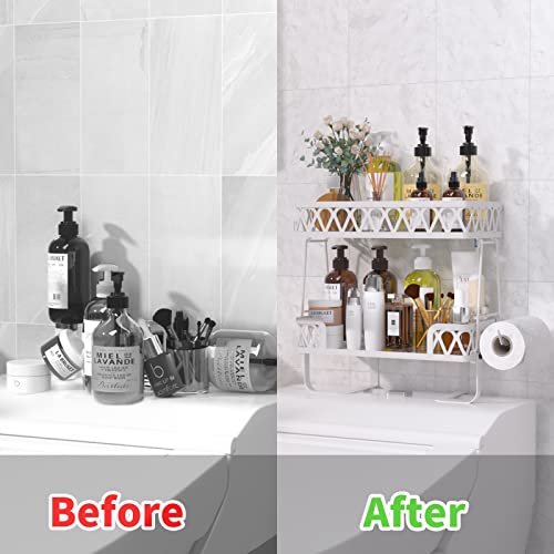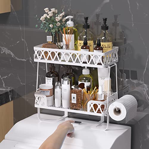 - 【موفر للمساحة】رف بطبقتين فوق المرحاض لحمل المزيد من عناصر الحمام، مثل الشامبو والصابون ومنظف الوجه وما إلى ذلك. يتميز المنظم الموجود فوق المرحاض بقاعدة شبكية وحواجز حماية؛ تمنع سقوط الأشياء الصغيرة مثل النظارات وماكينات الحلاقة ورغوة الحلاقة.