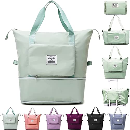 NUTSE - شنطة دافل ويكيندر للسفر كبيرة السعة ومحمولة على الكتف وقابلة للطي وتتضمن فصلا بين الاغراض الجافة والرطبة، مناسبة للرياضة والسفر وصالة الالعاب الرياضية للنساء من نوتس, أخضر, Large