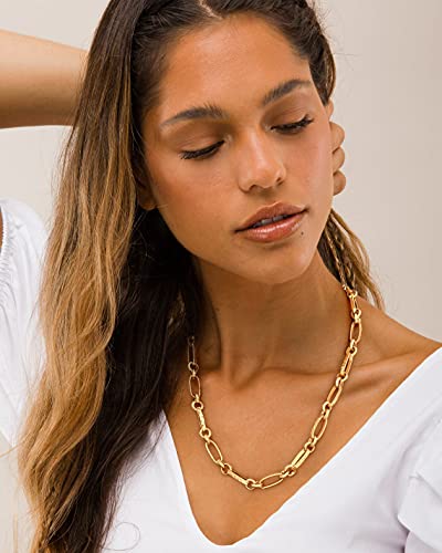 NUZON - سلسلة انيقة مطلية بالذهب عيار 14 قيراط للنساء والفتيات - ثعبان ربط بنمط كوبي مشبك خرز على شكل كرة دلاية من عرق اللؤلؤ الطبيعي مجوهرات للهدايا معدن