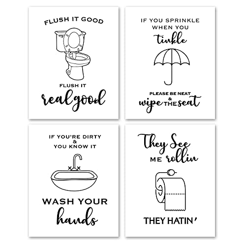 Nvhai - تابلوهات باقتباسات طريفة للحمام، مجموعة من 4 بوسترات مطبوعة مناسبة كهدية لديكور تواليت المنزل والمكتب (8×10 بدون برواز)