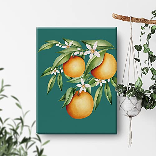 Nvhai - لوحة القماش زهرة البرتقال من Nvhai - لوحة فنية لفاكهة البرتقال لديكور جدران المنزل والمطبخ، لوحة مؤطرة للهدايا (مقاس 3.7×4.6 م)