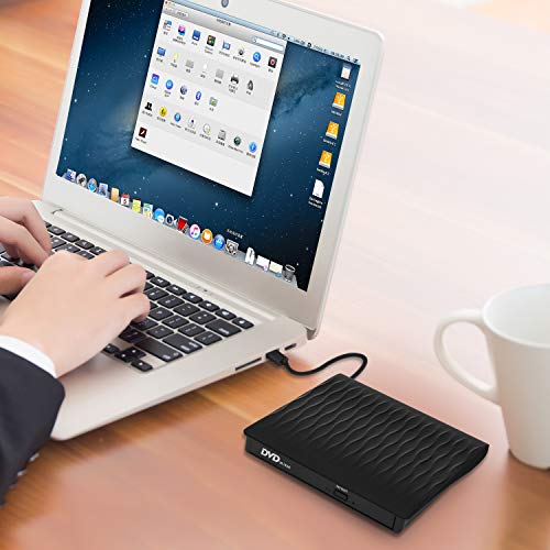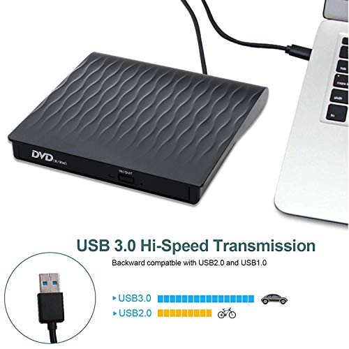 KENGDUDU - انفيبرانج محرك اقراص دي في دي خارجي بمنفذ USB 3.0 من كينجدودو، مشغل سي دي في دي + ار دبليو بصري نحيف، ناسخ لاعادة الكتابة للابتوب والكمبيوتر المكتبي وويندوز 1087 وماك بوك وماك بوك ولينكس وابل (اسود)