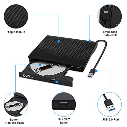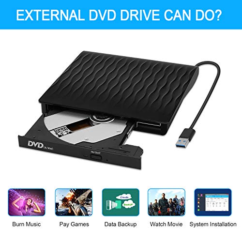 - (التوصيل والتشغيل) - محرك أقراص سي دي في دي خارجي لا حاجة إلى مشغل خارجي ومصدر طاقة. ما عليك سوى توصيله بمنفذ USB الخاص بك. يو اس بي 3. 0 قرص مضغوط خارجي هو الرفيق المثالي لأجهزة الكمبيوتر التي لا تحتوي على محرك أقراص داخلي