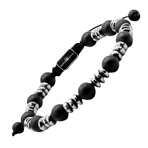 generic - سوار خرز للرجال من ان في ار جي في ان، حجر اونيكس اسود هيماتايت سبيكترولايت، حجر طبيعي خام اصلي قابل للتعديل 7.5-9 انش معصم ذا ديب بيلو سيشن