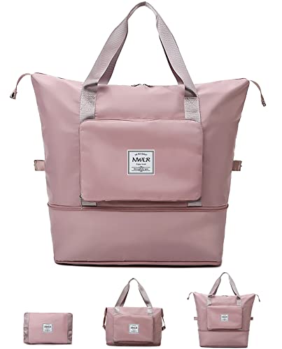 NWLR - شنطة سفر دفل بسعة كبيرة قابلة للطي وخفيفة الوزن ومقاومة للماء وقابلة للتوسيع للامتعة بقسم منفصل للاستخدام الجاف والرطب لصالة الالعاب الرياضية، مناسبة لعطلة نهاية الاسبوع للنساء والرجال, زهري