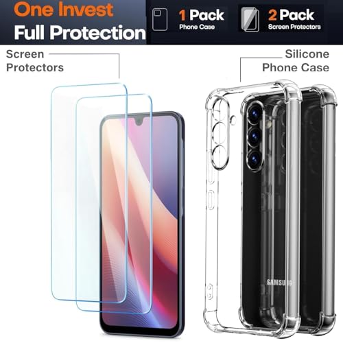 NWNK13 - جراب موبايل رفيع وناعم من البولي يوريثين المقاوم للحرارة مقاوم للصدمات والخدوش بحماية للكاميرا مع شاشتي حماية من الزجاج المقوى متوافق مع سامسونج A36 وA56 من NWNK13