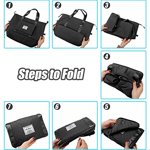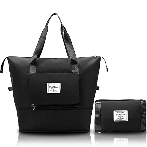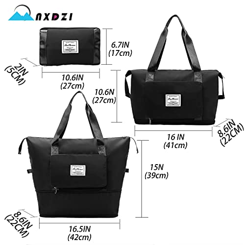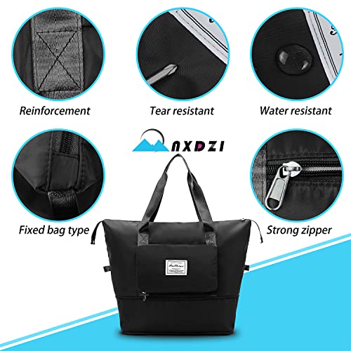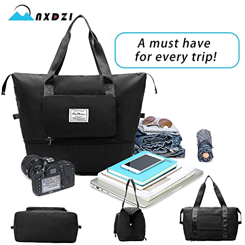 NXDZI - شنطة متعددة الاستخدامات للنساء بتصميم قابل للطي والتوسيع، خفيفة الوزن ومقاومة للماء، مناسبة للسفر والانشطة الرياضية وانشطة الهواء الطلق الاخرى, أسود, A1
