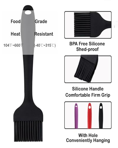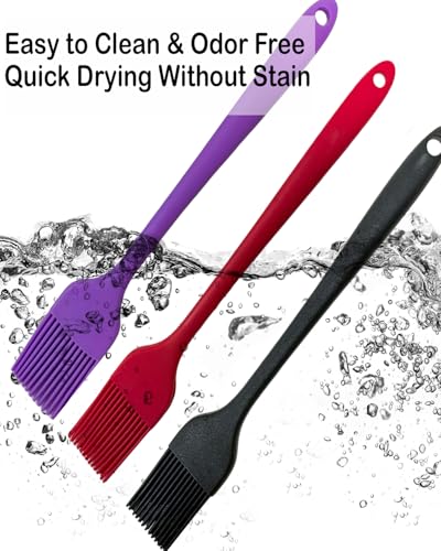 NXRACSH - فرشاة معجنات سيليكون للخبز مقاومة للحرارة حتى 315 درجة للاستخدام مع الزيت والصوص لا يتساقط منها الشعر مناسبة لدهن الزبدة والخبز واللحم وتلميع البيض والكيك من NXRACSH، مجموعة 3 قطع أحمر وأسود وأرجواني