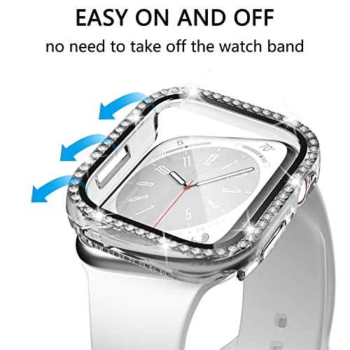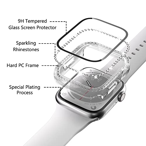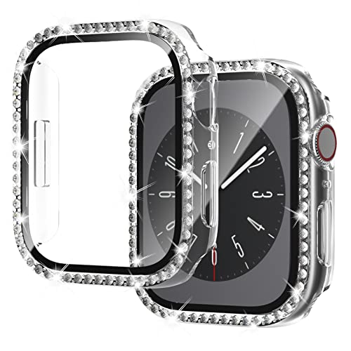 Nxtudy - جراب حماية من نكستودي لسلسلة 8 45 ملم وسلسلة 7 41 ملم مع واقي شاشة، عبوة من قطعتين من البولي كربونات الصلب اللامع ومرصع بأحجار الراين الكريستالية اللامعة لإكسسوارات اي ووتش 8 7 45 ملم للنساء، شفاف