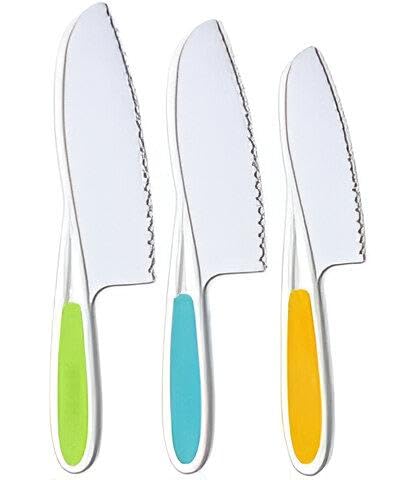 Generic - سكاكين أمان من النايلون - مجموعة سكاكين مطبخ للأطفال من 3 قطع مع حواف مسننة لتقطيع الفواكه والسلطة والخضروات والكيك بشكل آمن