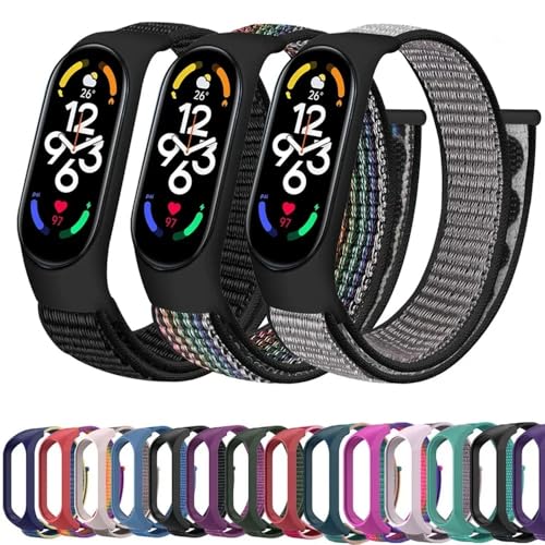 ELMO3EZZ - سوار نايلون لساعة شاومي مي باند 3/4/5/6/7 مع سوار معصم رياضي لساعة شاومي الذكية 3/4/5/6/7 وملحقات سوار ساعة بديل